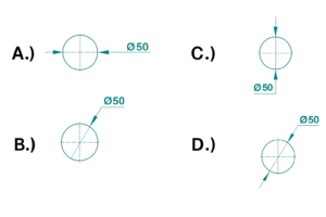 मानक के अनुसार सर्कल में कौन सा आयाम सही ढंग से चिह्नित है?