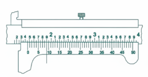 चित्र में दिखाए गए वर्नियर कैलिपर का पाठ्यांक क्या है?